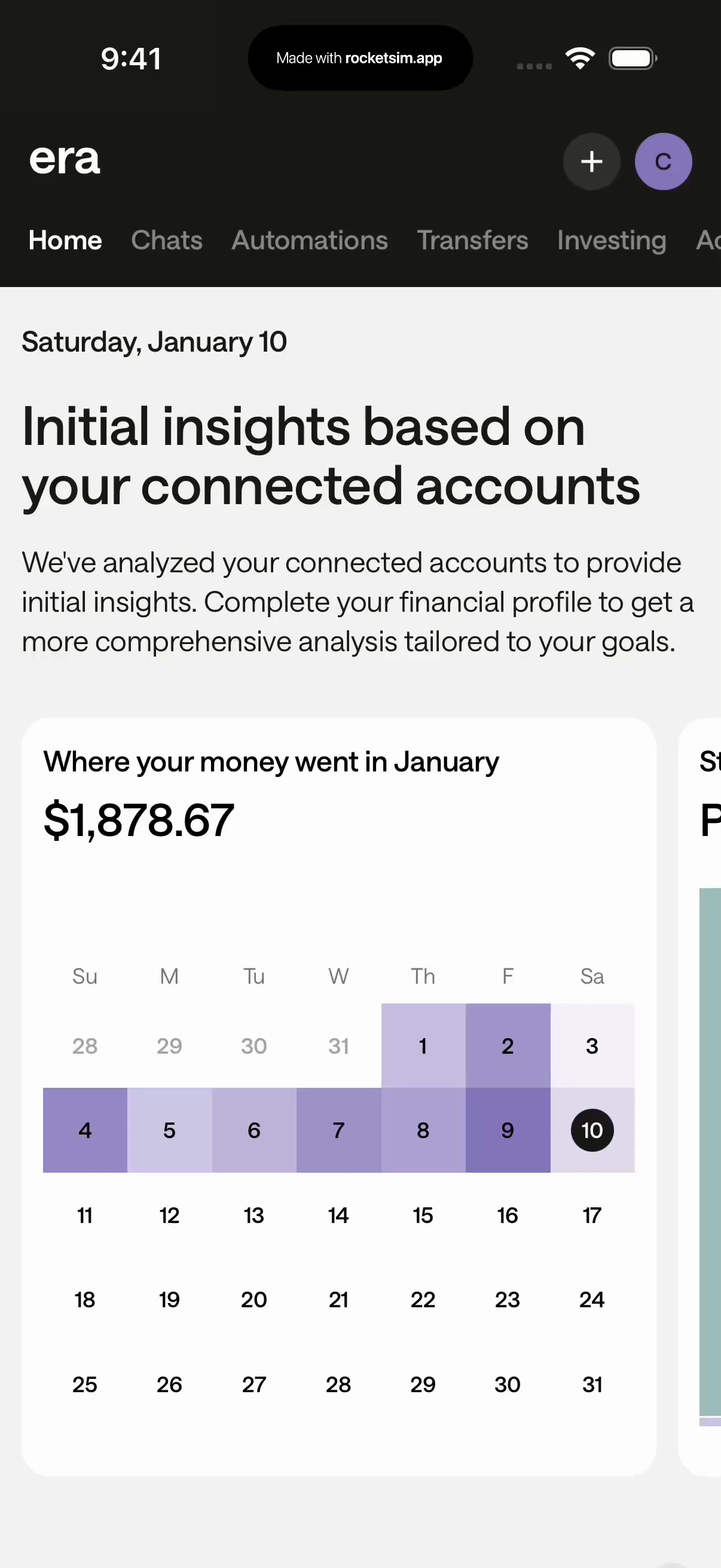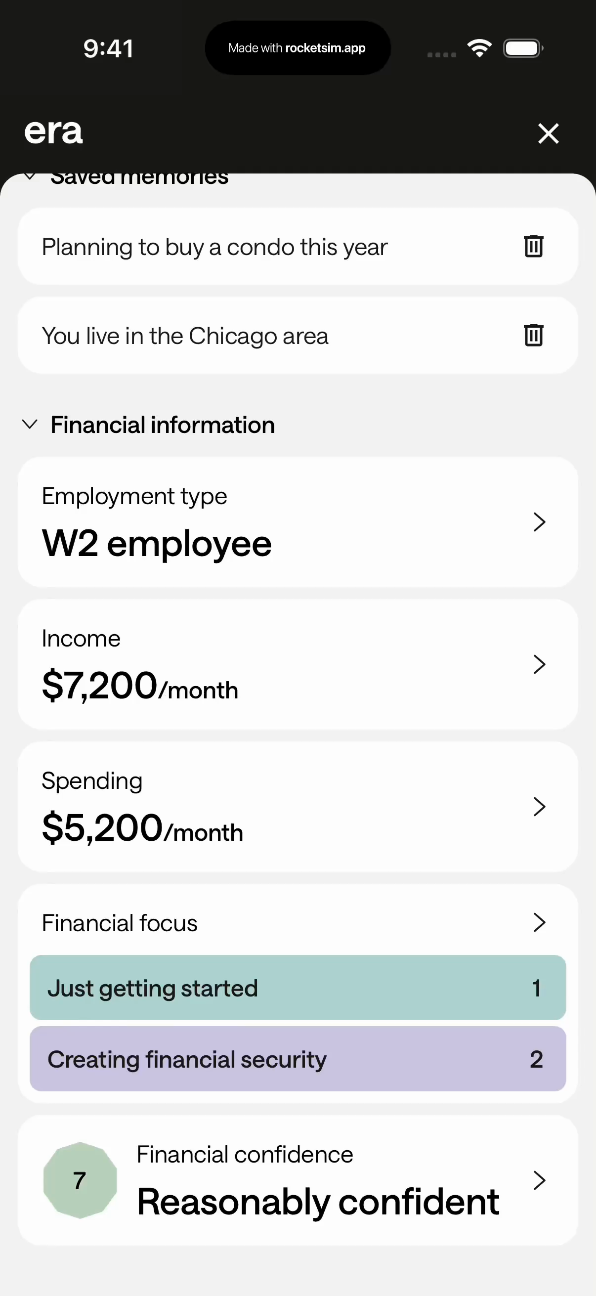 Era is a personal, AI-powered financial agent that helps you understand your money, automate your finances, and grow your wealth. I implemented many of the core features of the product as an early design engineer at the company, with a particular focus on creating a web app that felt native on mobile devices.